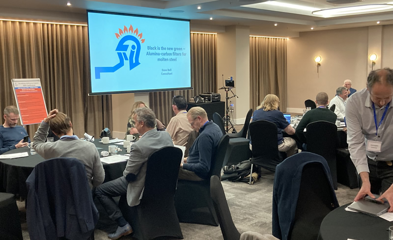He said that companies needed to “invest in high performance refractories and proactive maintenance” and that “innovation in ladle refractory technology remains essential.” Kicking off the afternoon sessions, independent consultant, David Bell took to the podium to present: ‘Black is the new green – alumina-carbon filters for molten steel.’ He highlighted and compared the different filters on the market – steel, alumina-carbon, 3D printed, ceramic. He said: “Alumina-carbon filters are more resilient during the metal pour. You can’t pour very low carbon steel through them, that is better with zirconia filters. 300m is the largest filter at the moment – can go larger but they have to be handmade, so they won’t fit on the production line.” In concluding, he thanked Vesuvius, his previous employer, for permission to present the paper.