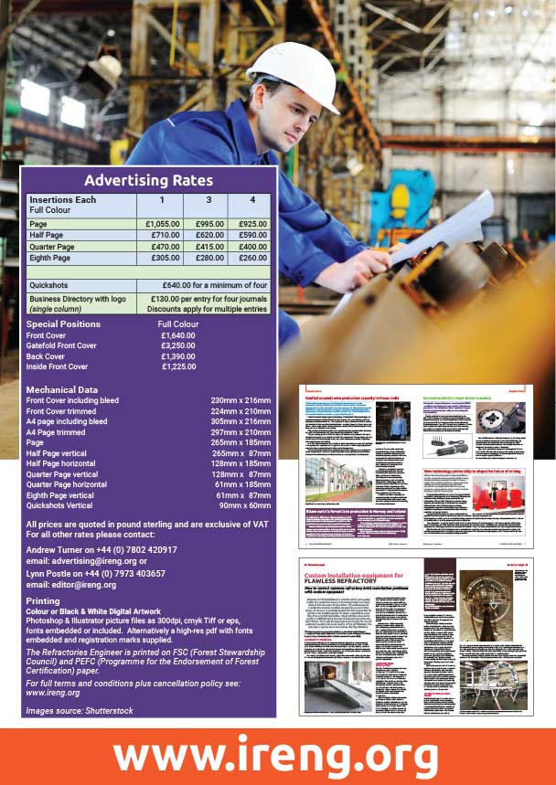 As the official mouthpiece of the IRE and a global reference source, The Refractories Engineer helps to keep members and the wider industry up to date on the latest developments in refractories’ engineering and technology. Published as a quarterly printed journal (and supported with digital resources), The Refractories Engineer provides its readership with in-depth insights into the industry and offers a “go to” read for anyone working in the refractory sector.